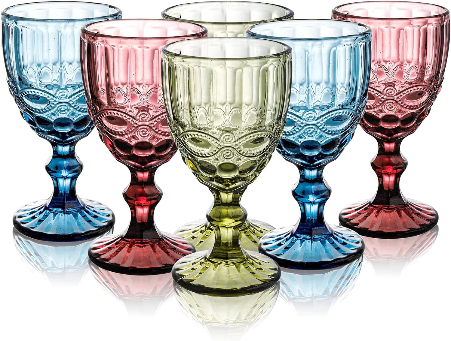 These stemmed glasses come as a mixed set including goblets in red, blue and green. These are perfect for serving drinks like red wine, white wine, cocktail, soda, juice, beer, whiskey, iced-water, lemonade or any beverage. From family gatherings to outdoor parties, these beautiful wine glasses are perfect for any occasion and will impress your guests. These beautiful and functional goblets add color to any table, dinner or party.